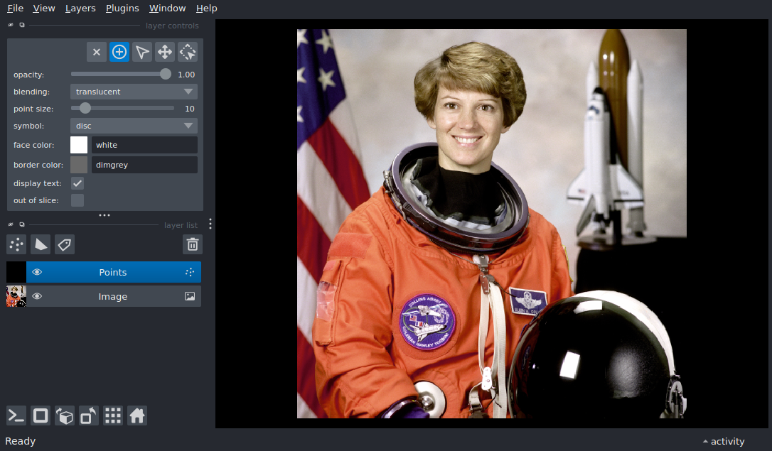 Display one points layer ontop of one image layer using the add_points and