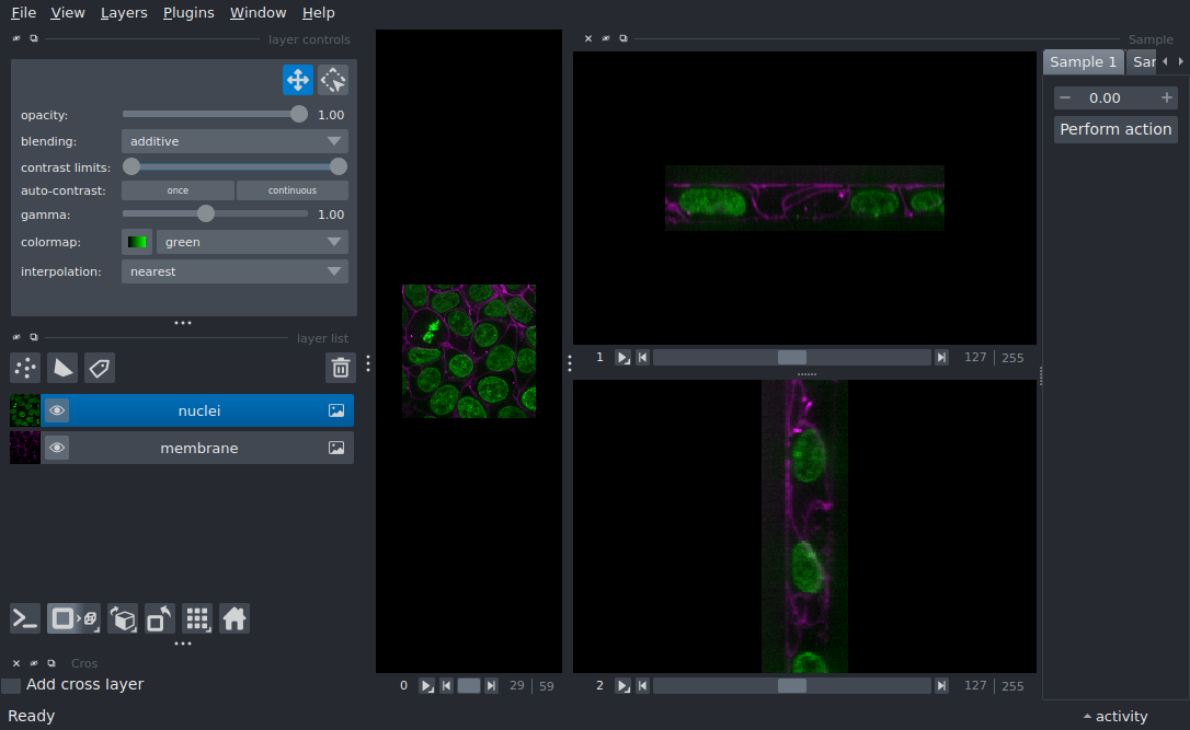 This example also contains the option to enable cross that will be moved to the current dims point (viewer.dims.point).