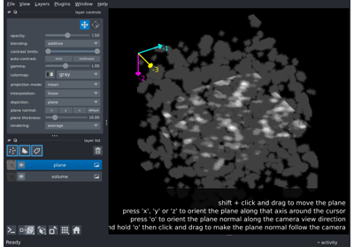 All examples in this gallery can be downloaded as Python scripts or Jupyter notebooks to be executed locally. Check out Jupyter notebook usage for more details on using napari in Jupyter notebooks.